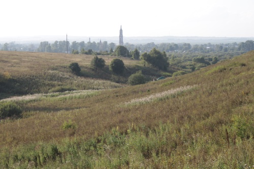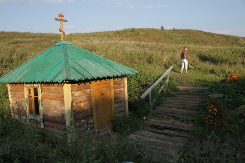 | Вот такие пейзажи открываются с края оврага, внизу которого бьёт родник Алёши Поповича | Так выглядит купель около родника |